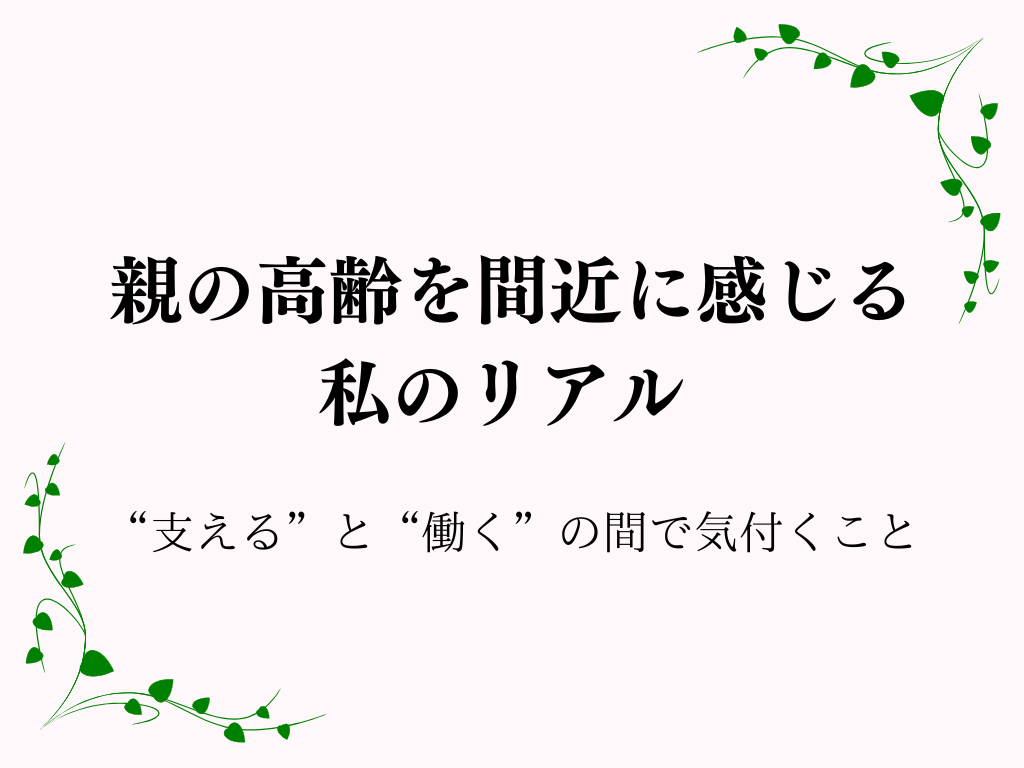 親の高齢を間近に感じる私のリアル 〜“支える”と“働く”の間で気付くこと〜