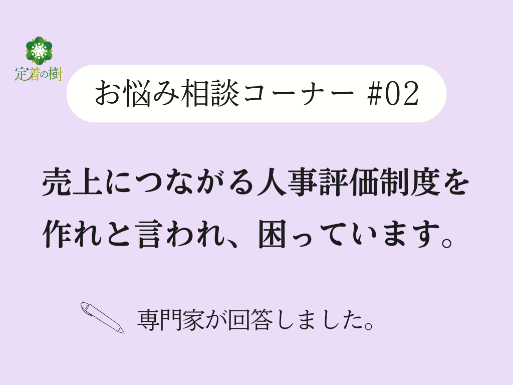 売上につながる人事評価制度を作れと言われています。定着の樹 お悩み相談コーナー #02